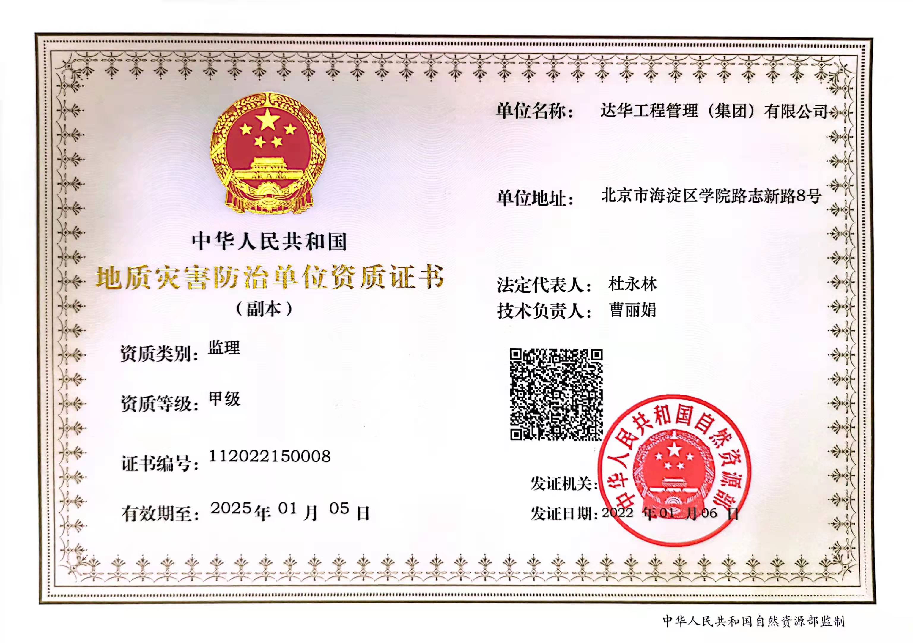 • 達華集團榮獲中國自然資源部頒發(fā)的地質(zhì)災(zāi)害…